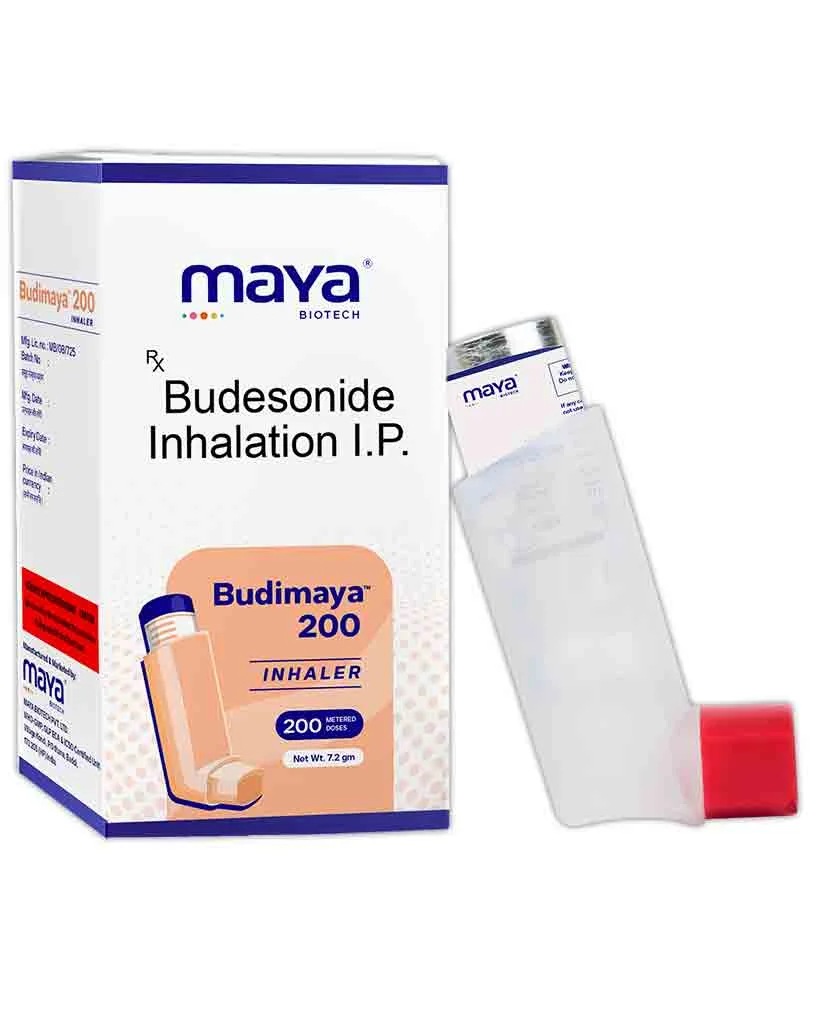 Budesonide Inhaler is a corticosteroid medication indicated for the maintenance treatment of asthma and COPD. Budesonide helps reduce inflammation in the airways, making breathing easier and reducing the frequency of respiratory flare-ups. The 200 mcg dose is a commonly prescribed strength due to its balance of efficacy and safety.